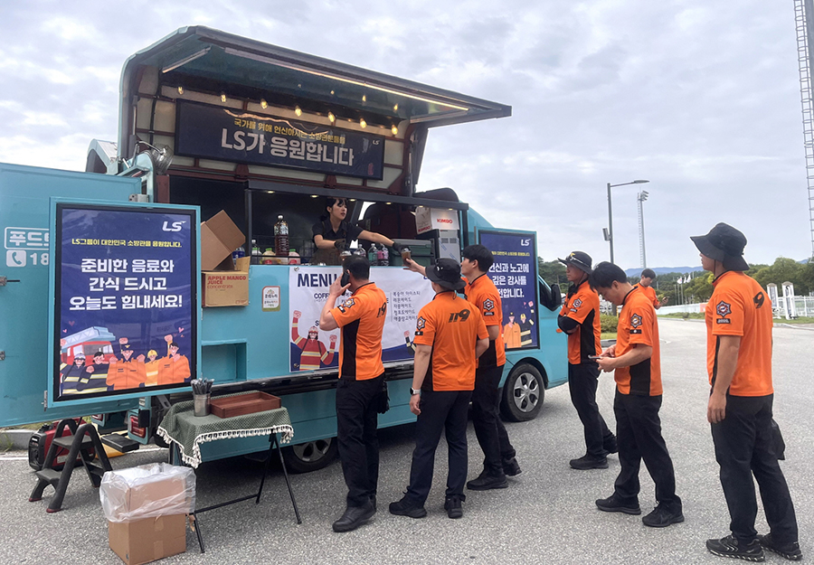 LS는 소방공무원들의 노고에 감사의 뜻을 전하기 위해 이달 8일(월)부터 12일까지 5일간, 강릉 강북공설운동장 인근에서 커피차를 운영하며 아메리카노를 비롯한 음료 7종과 샌드위치 등 간식을 제공할 예정이다.