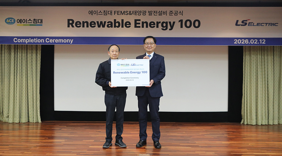 LS일렉트릭은 에이스침대 음성 공장과 여주 공장에 태양광 발전 설비와 연계한 에너지통합관리시스템(FEMS; Factory Energy Management System) 구축을 완료하고 12일 준공식을 가졌다고 밝혔다.