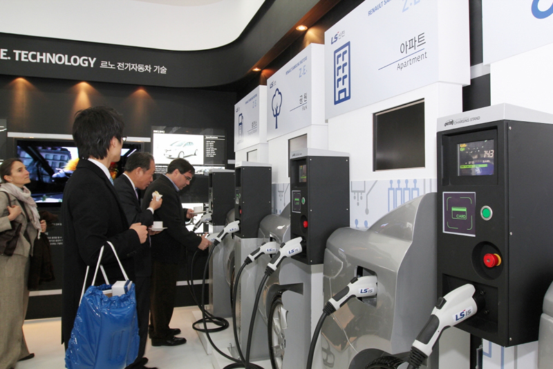 LS산전이 2011 서울 모터쇼에 참가, 전기차 충전 솔루션을 선보이고 있다.