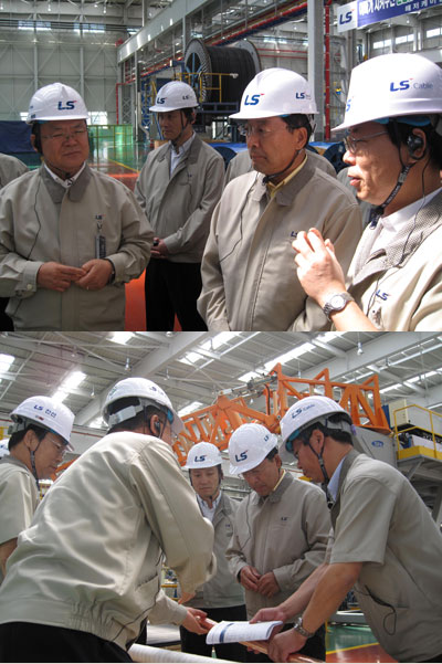 지난 2월 넥상스, 프리즈미안, ABB 등 글로벌 빅3 기업이 독점하던 해저케이블 시장에 첫 진출하여 당당히 3,300억원 규모의 제주-진도(105km)간 프로젝트를 수주한 임직원들을 격려하고 성공적 구축을 당부했다.