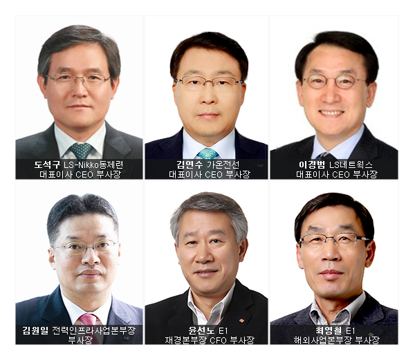 LS-Nikko동제련은 도석구 ㈜LS 부사장이, 가온전선은 김연수 LS I&D 부사장이, LS네트웍스는 이경범 부사장이 각각 대표이사 CEO로 신규 선임돼 회사를 이끌 예정이다. 이들은 새로운 리더십을 구축할 전문경영인으로, 조직분위기를 쇄신하고 그룹의 성장을 주도할 수 있는 능력을 겸비한 것으로 평가를 받아왔다.
