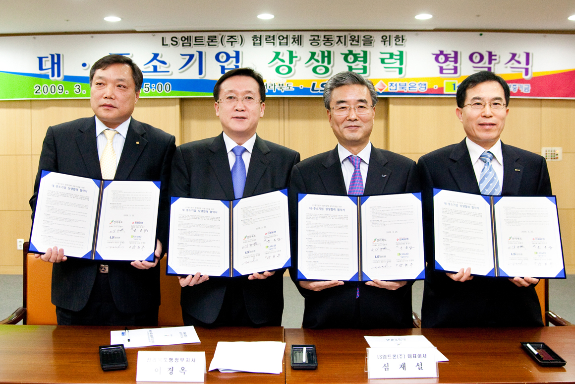 심재설 LS엠트론 대표이사, 이경옥 전라북도 행정부지사, 문동섭 전북은행 부행장, 강희주 기술보증기금 충청호남지역 본부장, LS엠트론 협력업체 남광 이엔씨 김학범 사장 등이 참석한 가운데 진행된 이번 협약식은 대기업과 중소기업 상생을 위해 대기업을 주축으로 정부, 금융권 등이 힘을 모아 공동으로 중소기업을 지원한다는 취지로 인해 중소기업 지원을 위한 모범적인 사례로 정착될 것으로 전망되고 있다.