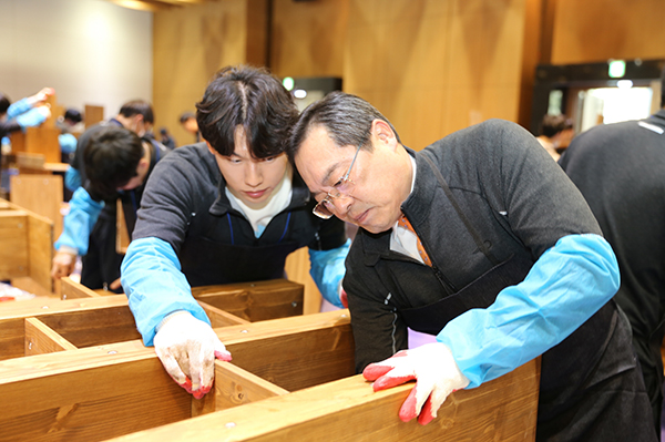■ 구 회장, 신입사원들과 조립식 목재 책장 만들어 안성시 사회복지시설에 기부