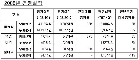 ■ 2008년 4분기 매출 4,116억원, 영업이익 470억원, 순이익 305억원